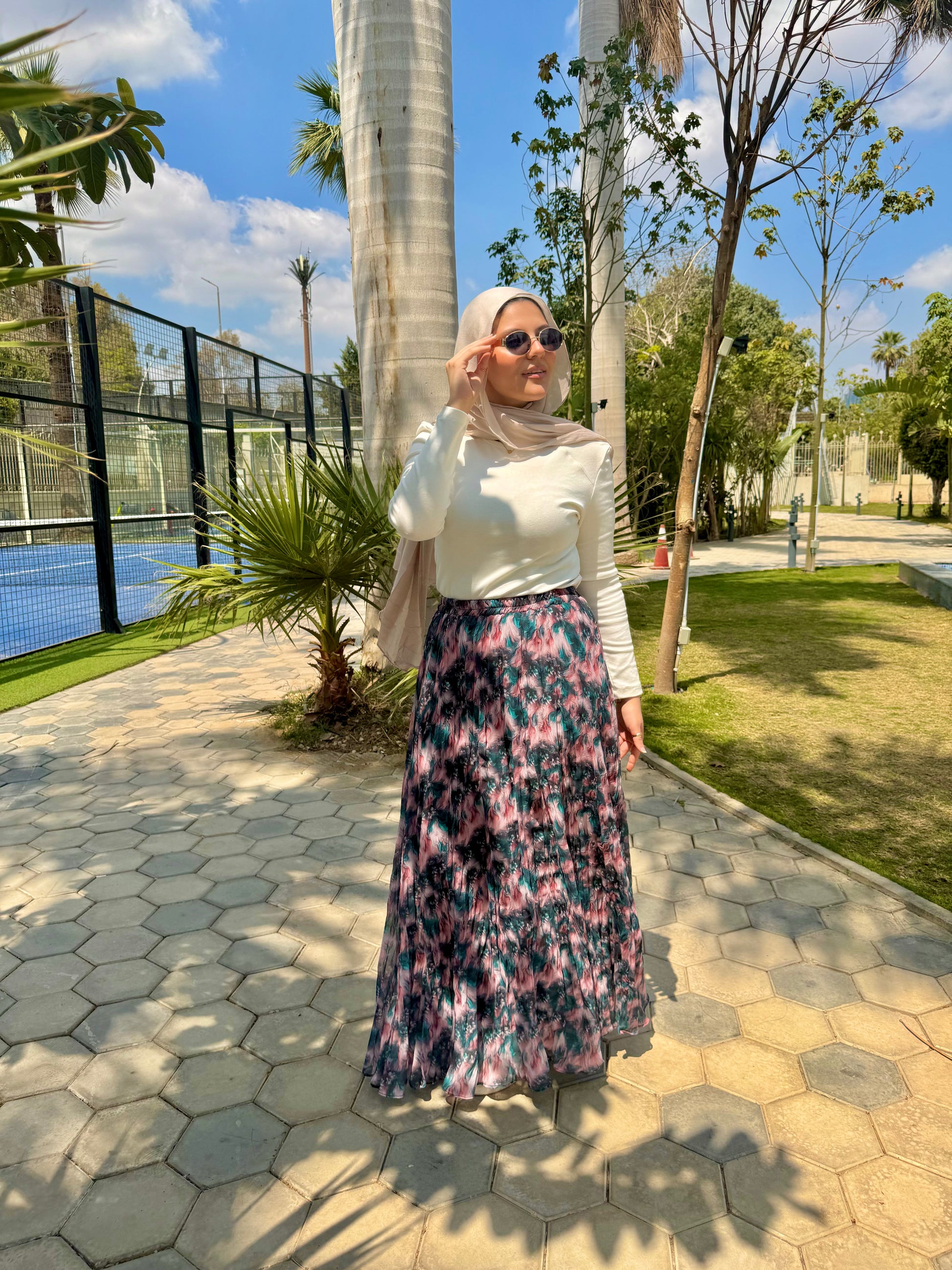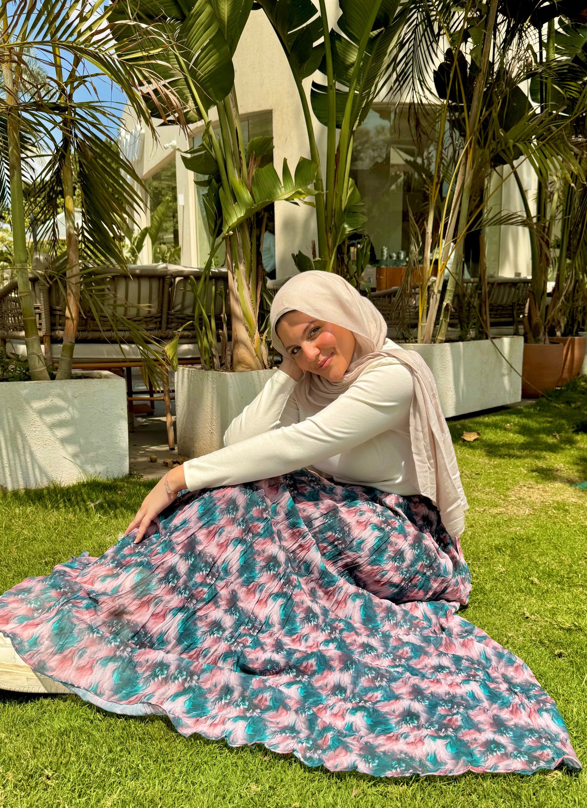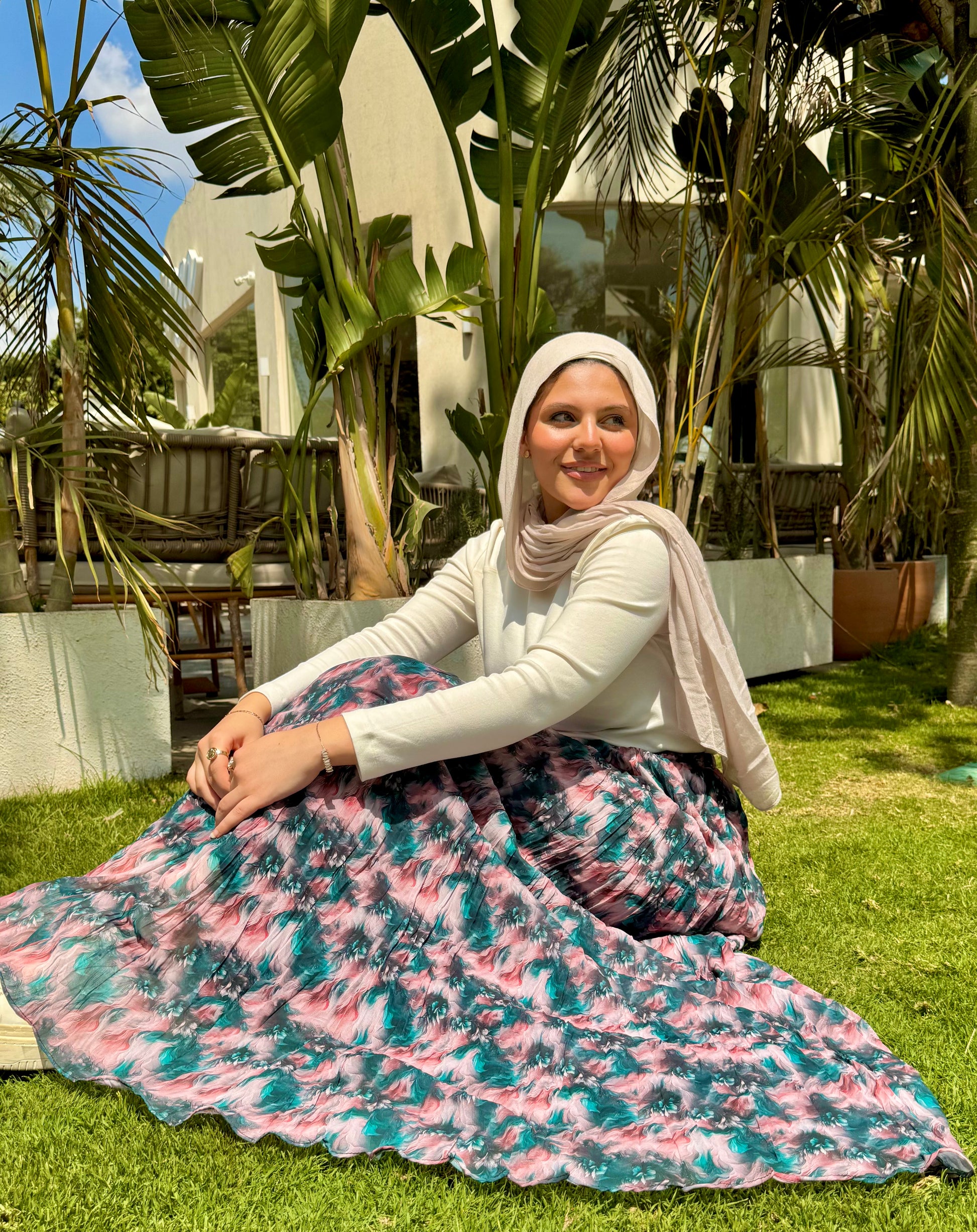 A wide chiffon skirt, fully lined for comfort and perfect coverage. The elastic waistband ensures easy and comfortable wear all day.