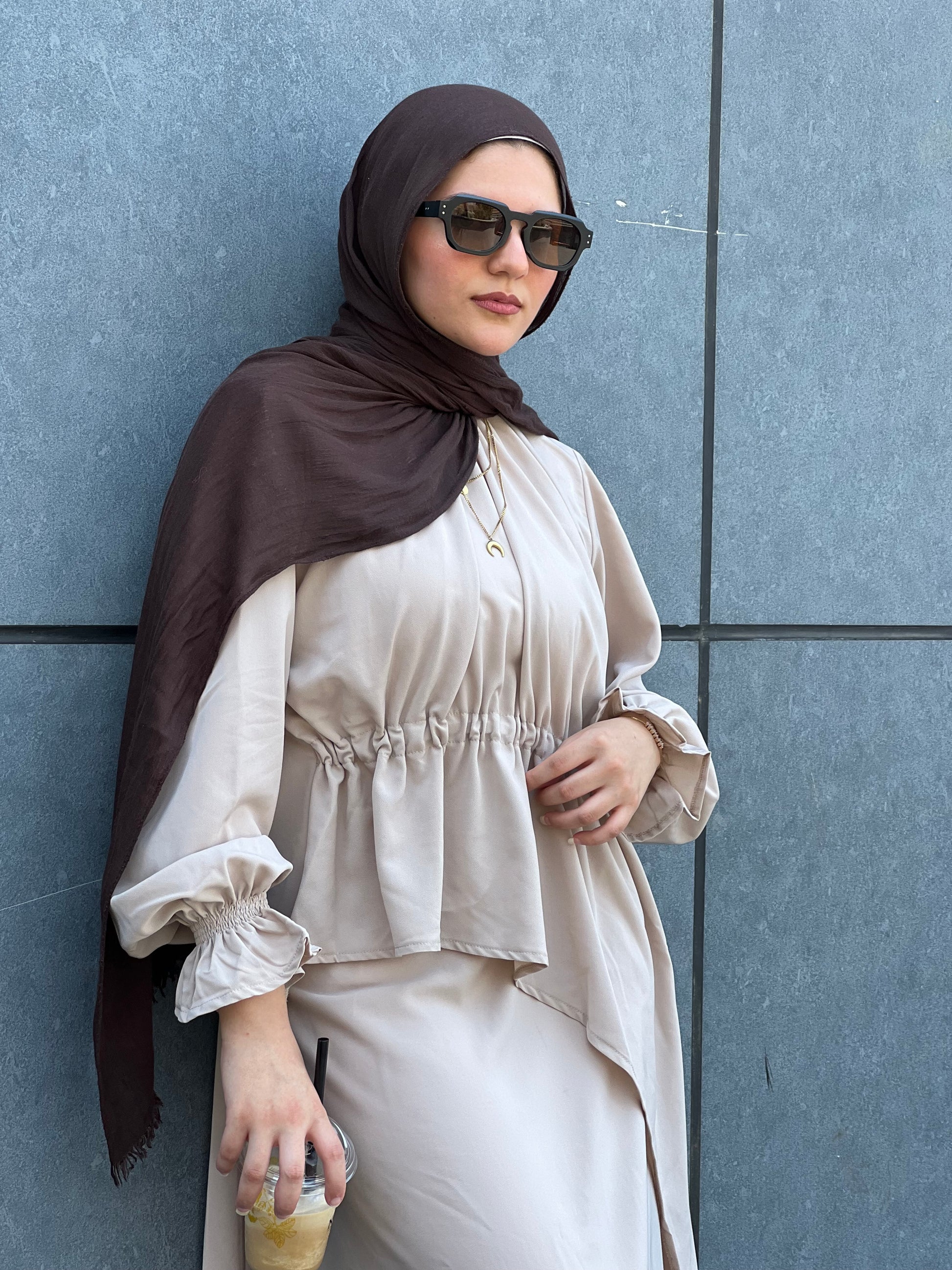 مصنوع من قماش الكريب، خفيف وغير شفاف، بتصميم محتشم ومختلف لن تجديه في أي مكان آخر.